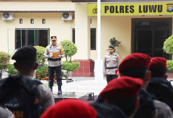 Dalam amanatnya Kapolres Luwu menyampaikan bahwa kegiatan apel pemberangkatan personil yang dilaksanakan hari ini merupakan kegiatan dalam manajemen Operasi Mantap Brata tahun 2023 – 2024 sebagai langkah untuk mengecek kesiapan personil Polres Luwu dalam pengamanan di TPS.