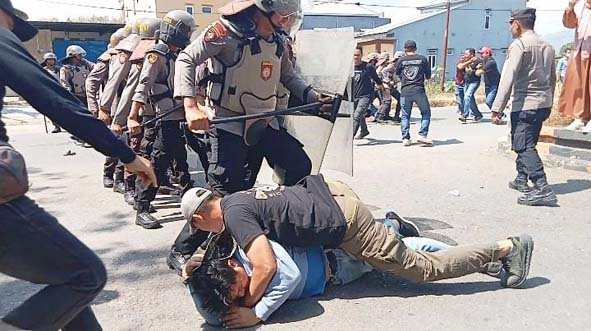 Upaya persuasif yang dilakukan Polisi untuk menenangkan massa gagal, massa terus melempari Kantor KPU dan Polisi, aksi itu kemudian dibalas dengan tembakan gas air mata dan air dari mobil Water Canon. Ratusan polisi dari Dalmas Satsamapta juga dikerahkan untuk memukul mundur para pengunjuk rasa.