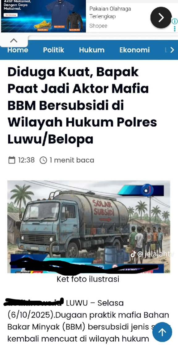 Komplotan ini kembali memuat konten berita di account Tiktok milik detikiNews.id dengan judul. “Diduga Kuat, Bapak Paat Jadi Aktor Mafia BBM Bersubsidi di Wilayah Hukum Polres Luwu/Belopa”.